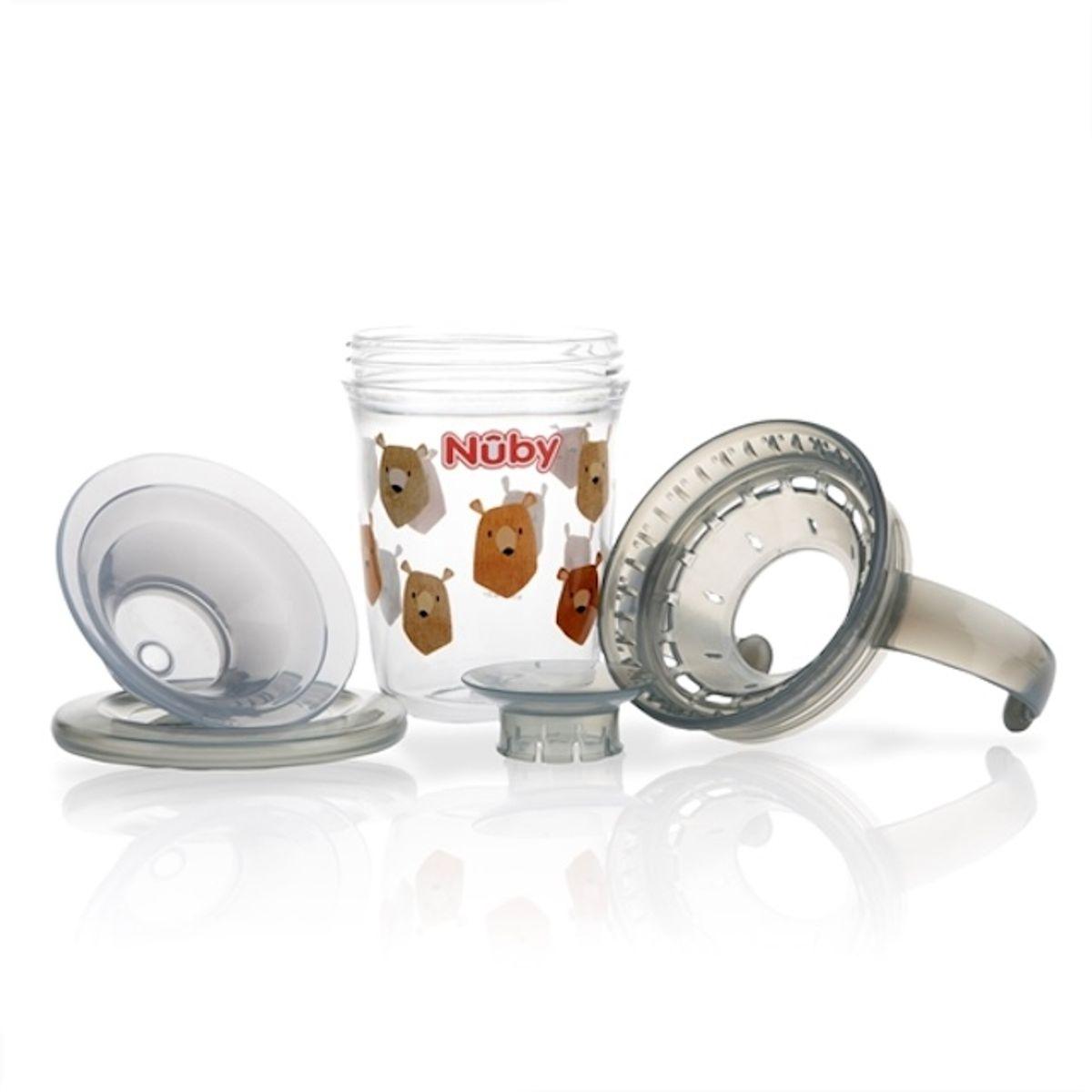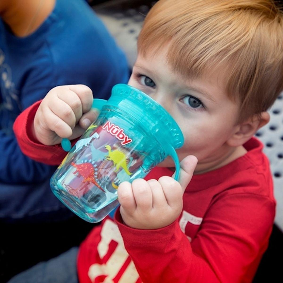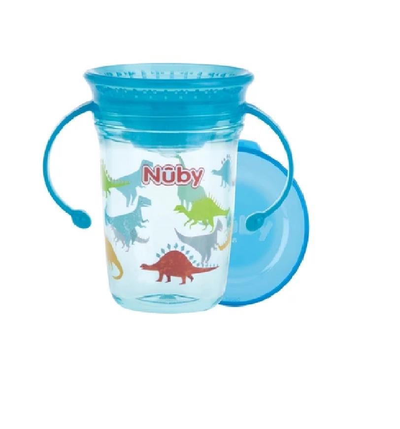 Nûby 360° Wonder Cup er den perfekte overgangen fra flaske til vanlig kopp. Den smarte designen gjør at barnet kan drikke fra hele kanten, akkurat som fra et glass – bare uten søl! Det innebygde No-Spill-systemet forhindrer lekkasje, selv uten ventil, og det følger med et hygienisk lokk for oppbevaring og transport.