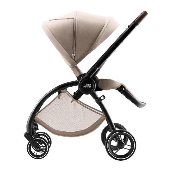 Når barnet kan sitte, bytter du til sportsdelen som er vendbar og har justerbar rygg- og fotstøtte som kan legges helt ned. Med firehjulsfjæring og svingbare/låsbare forhjul blir vognen lettmanøvrert selv på ulendt underlag. Den smale bredden på bare 55cm gjør den ideell for bylivet og offentlig transport