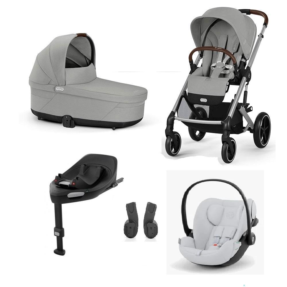 Sikre deg Cybex Balios S Lux Barnevogn, Stone Grey, sammen med Cloud G Bilstol, Fog Grey, Base G og Adapter – alt i ett komplett sett!