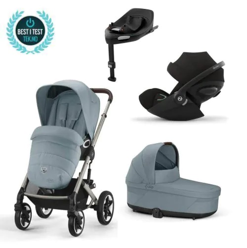 Inkludert i vognpakken: Talos S Lux vogn, Cybex Cloud G bilstol, base. Adapter følger ikke med.