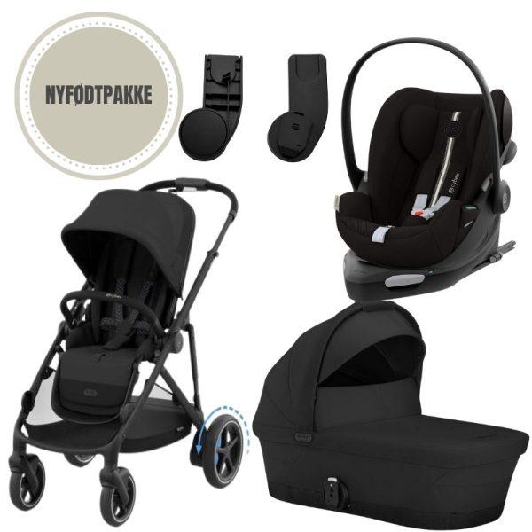Cybex, e-Gazelle S, Søsken-/tvillingvogn inkl. Gazelle S Cot + Cloud G & Base – Moon Black/Black