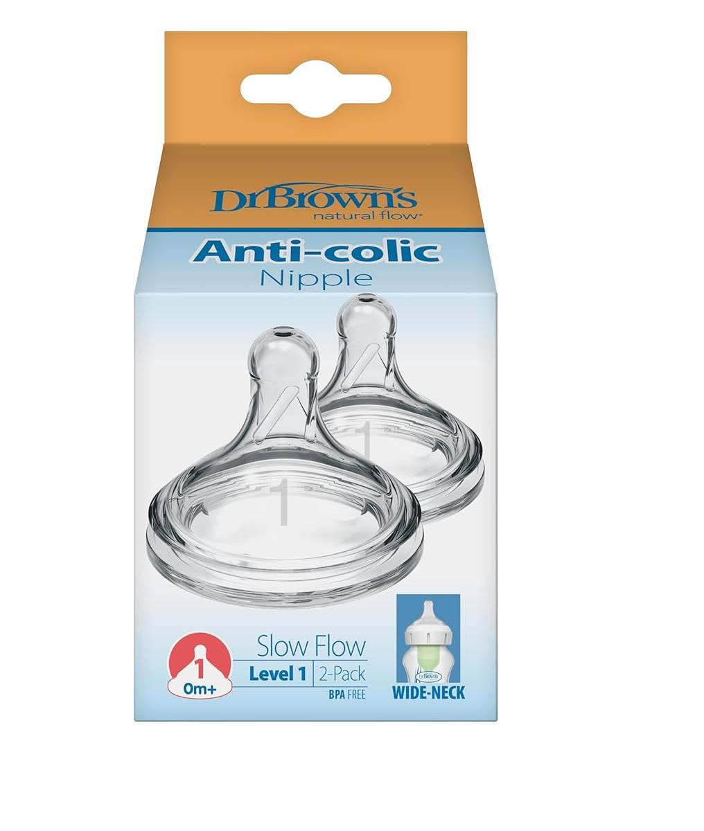 BREDHALS NYFØDT NIPPEL. Dr. Browns Slow Flow Nipple tilbyr en flyt perfekt for nyfødte.