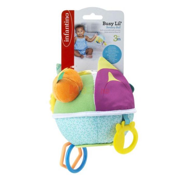 Infantino Busy Lil Sensory Ball er en interaktiv og sensorisk aktivitetsball for babyer, designet for å stimulere sanser og motorisk utvikling gjennom lek.