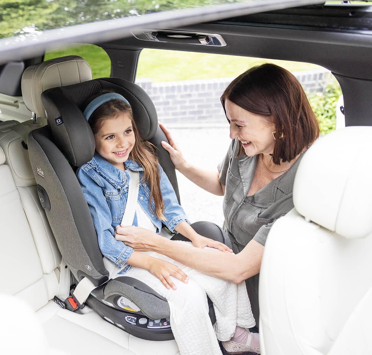 Joie i-Spin XL er designet for å følge barnets utvikling, fra nyfødt med innlegg og 5-punktsbelte, til større barn med bilens 3-punktsbelte i beltestolmodus.