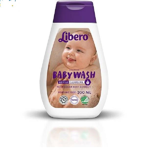 Libero Baby Wash er helt uten parfyme og snill mot den følsomme babyhuden.