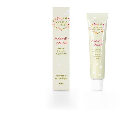 Ammesalven fra Lykkelig som liten er spesialutviklet for å gi den nybakte en så skånsom start på ammingen som mulig. Trygg* og god for såre bryster, må ikke vaskes av før du ammer. Inneholder pleiende og legende fettstoffer som legger seg som en beskyttende hinne over det såre området.