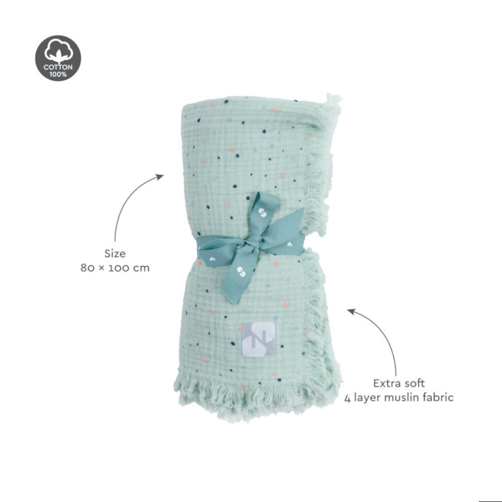 Muslin teppe 80x100cm, MInt Dot Sandy Nordbaby