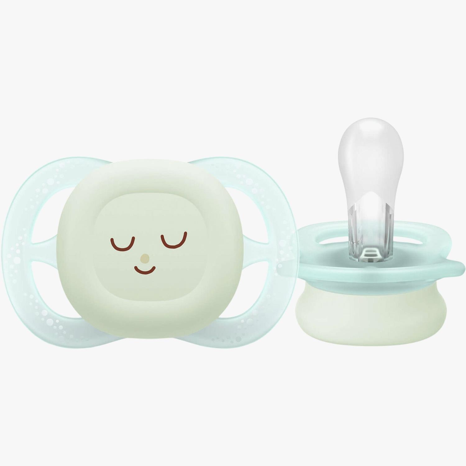 Ultra Night er en ekstra liten og lett smokk utviklet for nyfødte og premature barn. Den ergonomiske formen og myke silikonen er tilpasset barnets naturlige sugebehov fra første dag, og er utformet for å støtte en sunn utvikling av munn og tenner.