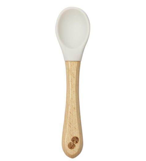 Skje med myk silikonspiss og trehåndtak. Laget av førsteklasses matgodkjent silikon som er helt BPA-fri. Enkel å rengjøre.