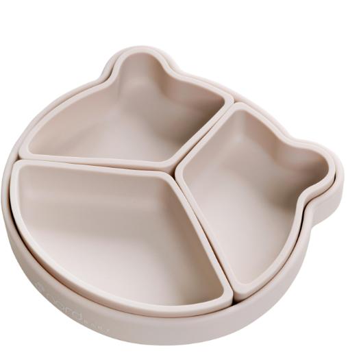 Silikontallerken. Silikontallerken vil gjøre barnets måltider til en morsom og enkel opplevelse. Tallerkenen er designet med en sterk sugekopp som hjelper tallerkenen å feste seg til bordet. Laget av høykvalitets matgodkjent silikon, helt fri for BPA. Tåler oppvaskmaskin, mikrobølgeovn og fryser (-20 °C til 220 °C).