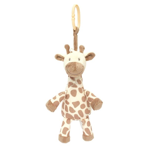 Liten myk sjiraff med klips på som gjør den perfekt til å henge den på vognen, sengen, bilsetet etc.