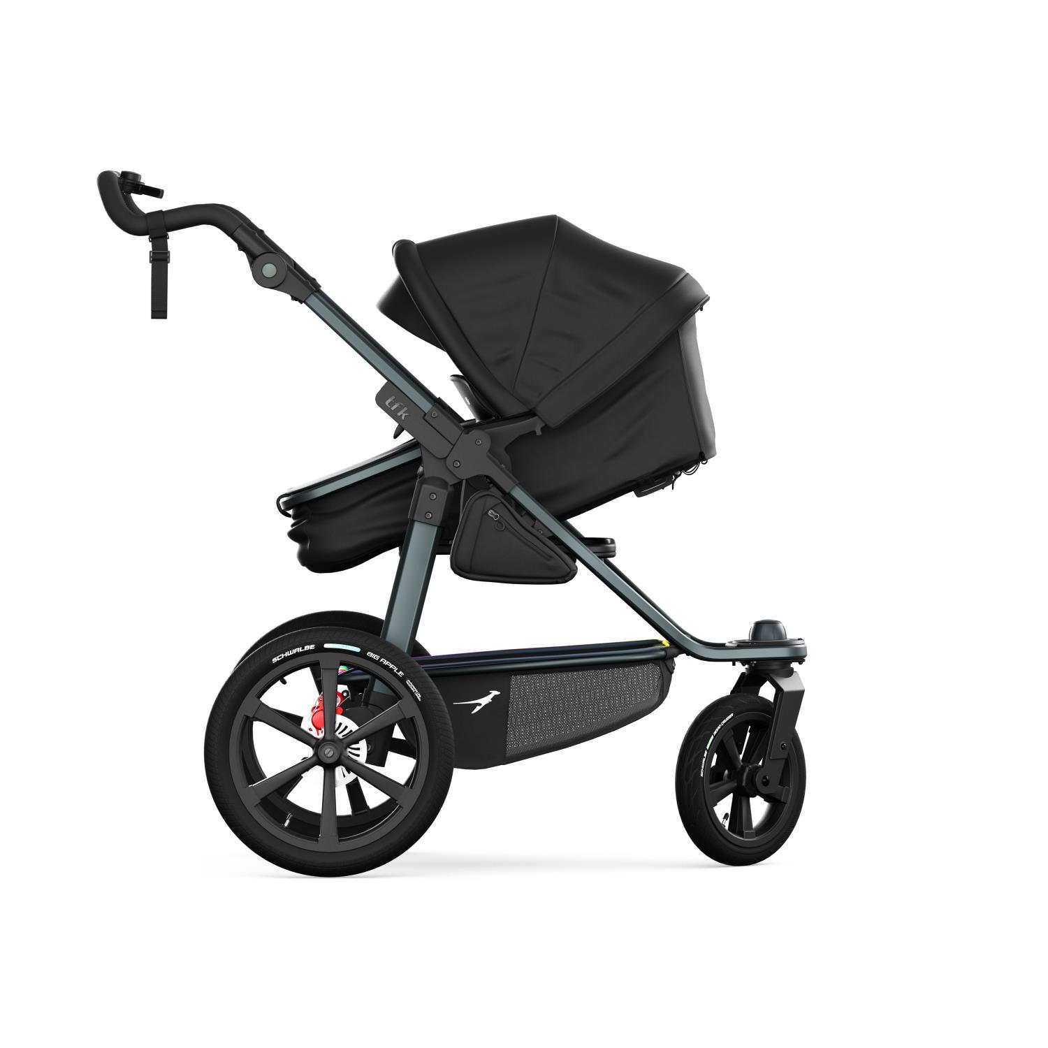 TFK Pro er utviklet spesielt for sporty foreldre som ønsker høyeste kvalitet og enestående kjøreegenskaper. Den nye løpsoptimaliserte designen gir deg den ultimate sportsvognen, som kombinerer stil og komfort. Med 16″ bakhjul og 12″ forhjul, justerbar rettlinjestabilitet og en lett aluminiumsramme, sikrer TFK Pro deg en stabil kjøretur!